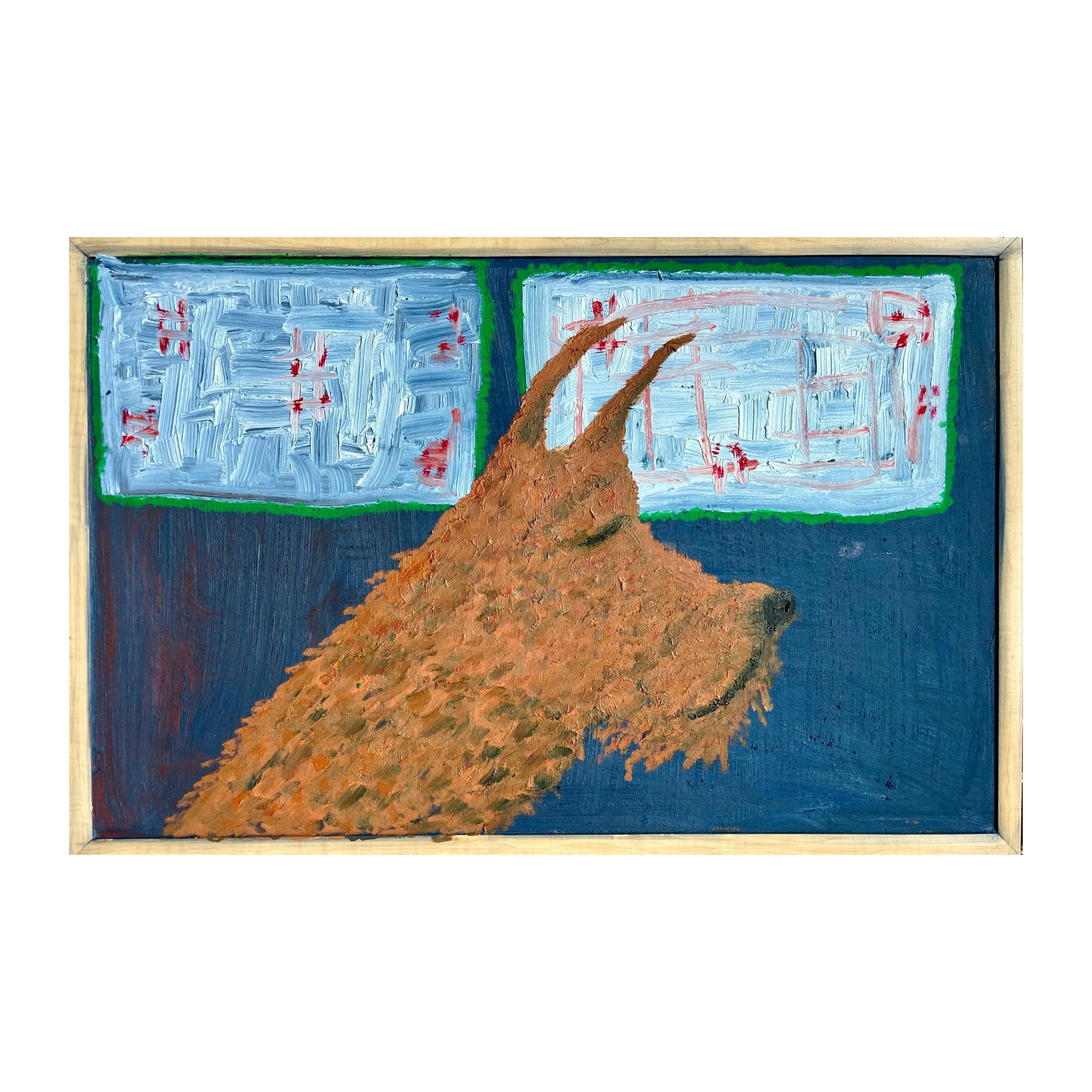 shop › "I'm letting sleeping dogs lie" "I'm letting sleeping dogs lie" $750.00 oil paint and pastel on found cork board with wooden trim, 35x23in oil paint and pastel on found cork board with wooden trim, 35x23in Add To Cart Added!